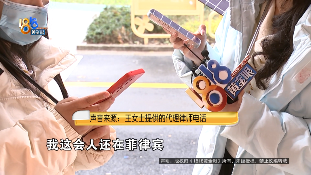 王女士提供的代理律师电话:我这会还在国外,我给公司的联系人电话给你吧,我这会人还在菲律宾。