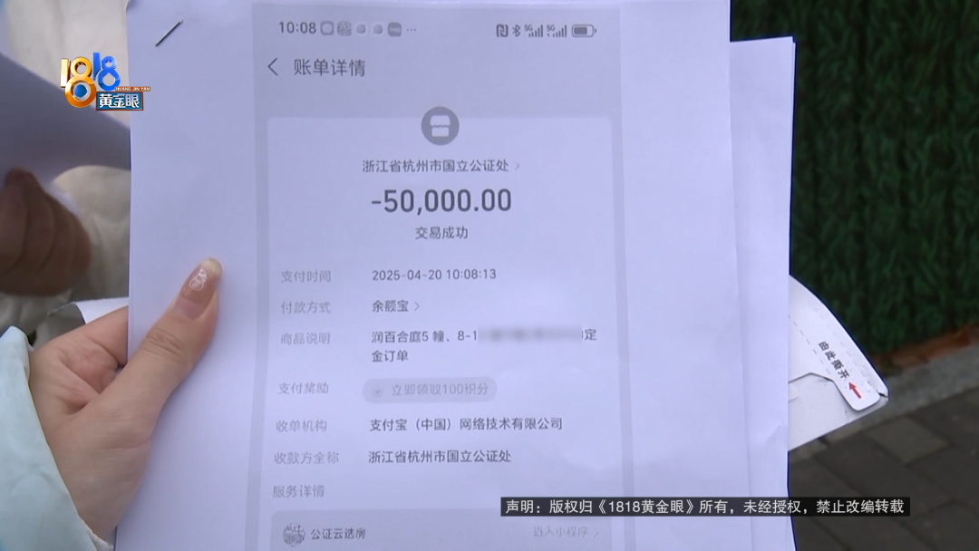 她付了5万元定金给浙江省杭州市国立公证处