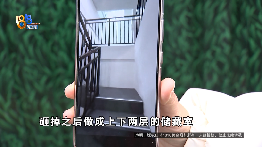 王女士:地下室他告诉我是个消防通道。如果买了这个地下室,他帮我们把上下两层的楼梯砸掉,砸掉之后做成上下两层的储藏室。如果你不买这个消防楼梯,那个门是给你锁住的,你回不了家,要绕一个大圈,不知道前面哪个地方可能有个门。我不会开车,我不想要车位。加装包因为我们家有好几个孩子,我也不想要加装包,加装包太贵了我也负担不起。